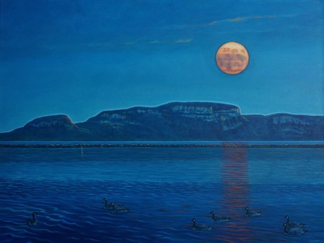 The Super Blue Moon And The Sleeping Giant, 2024, 18”x24", acrylic on canvas.