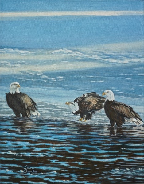 Eagles On The Ice, 2024, 14”x11”, acrylic on canvas.